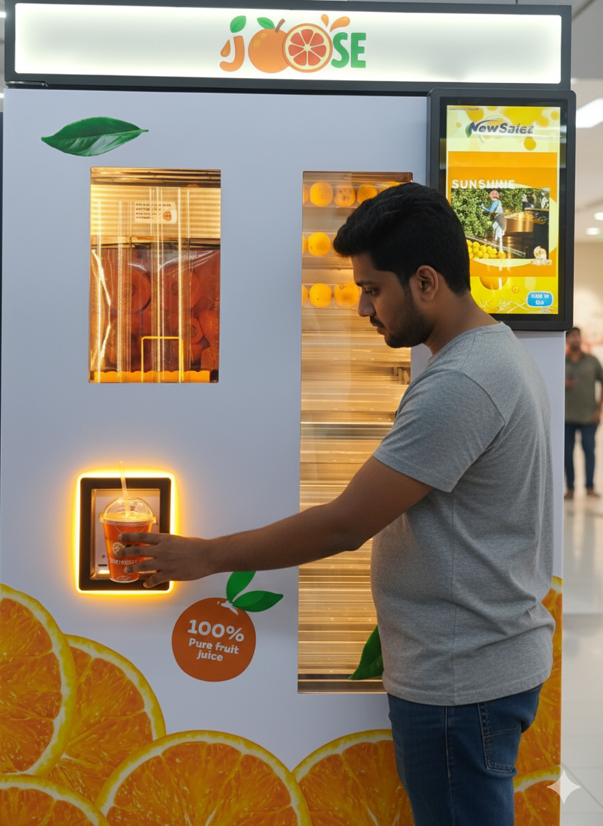 At IJOOSE, we believe healthy choices should be simple and accessible. Our mission is to make fresh orange juice available anytime, anywhere through smart and fully autonomous vending solutions.